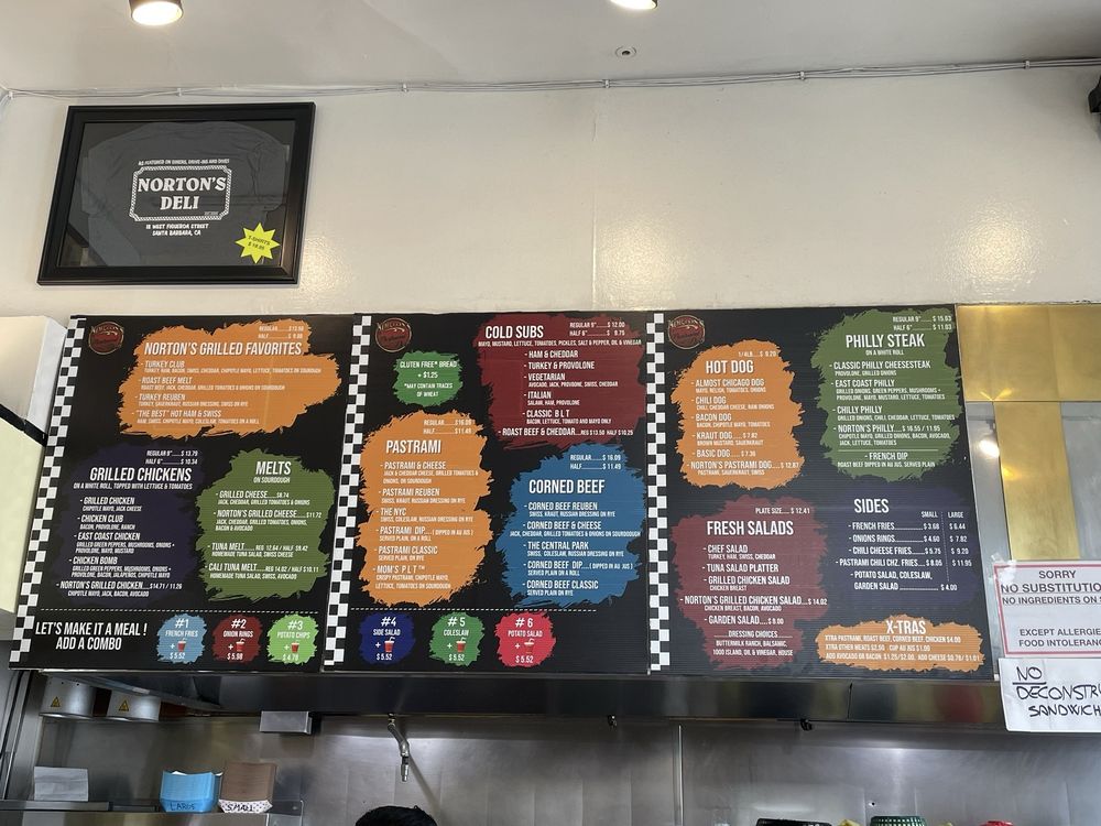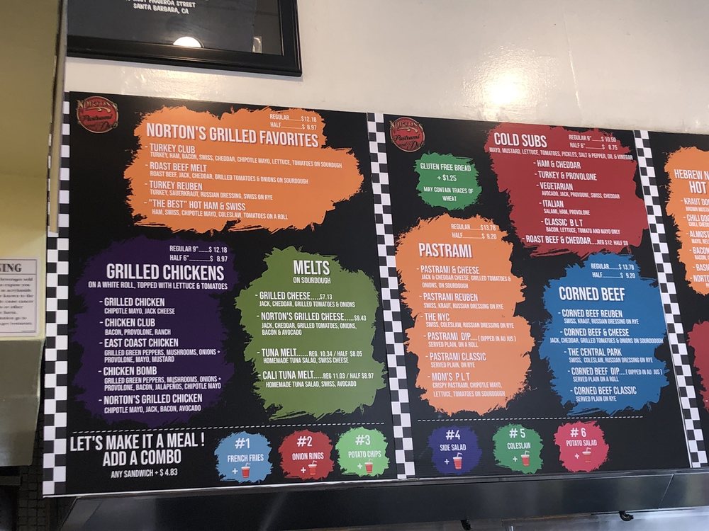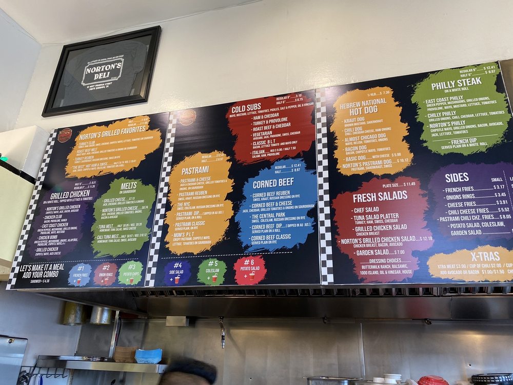 Welcome to Norton's Pastrami & Deli, a culinary gem nestled in Santa Barbara, known for its American deli classics. This vibrant spot specializes in mouthwatering sandwiches, particularly the famed pastrami, which has garnered rave reviews like "the 2nd best" from visitors. Beyond pastrami, the menu offers enticing options such as the Grilled Chicken Sando and the popular Mom's PLT, celebrated for its flavor-packed ingredients.